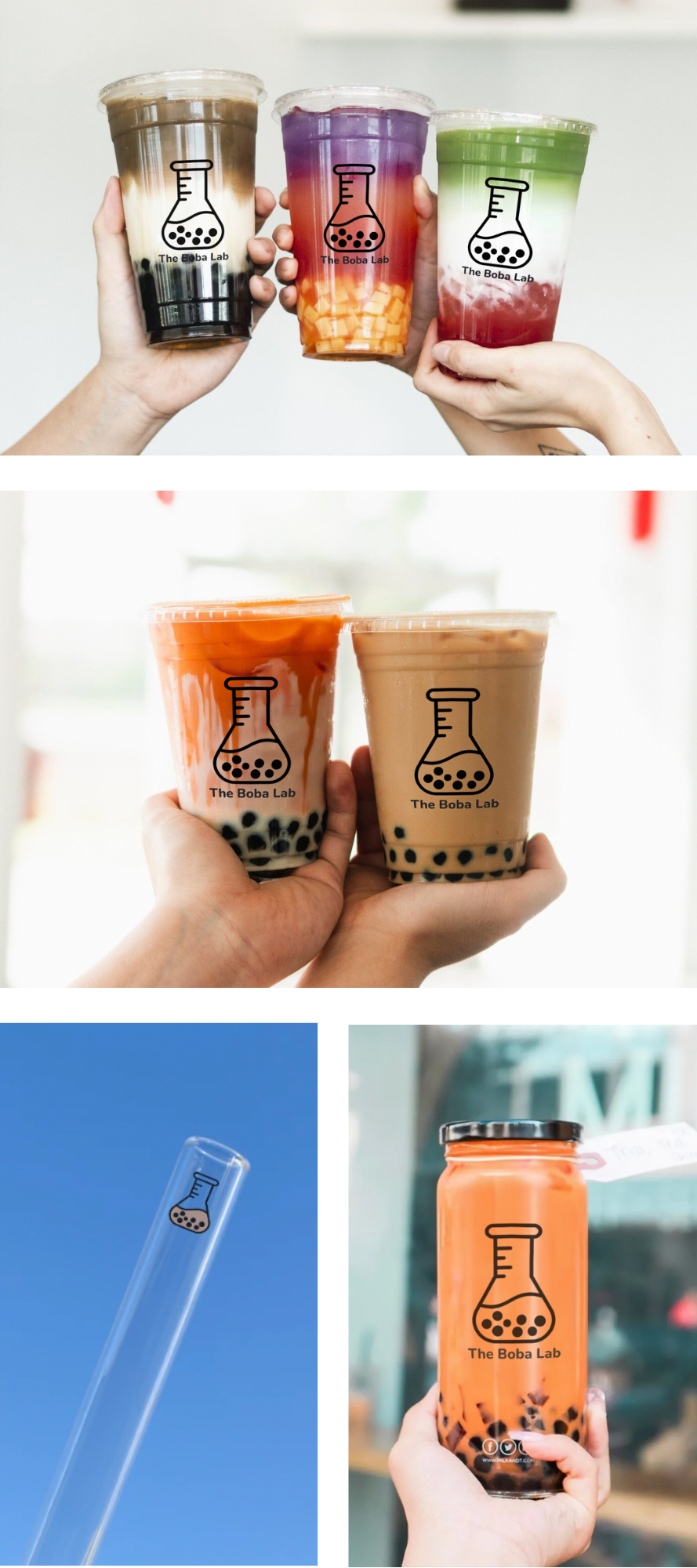 The logo depicts boba tea inside of a lab beaker in order to convey experimental theming of the brand. While designing the logo, I soon came up with the The Boba Lab for the name of the boba shop and app.
