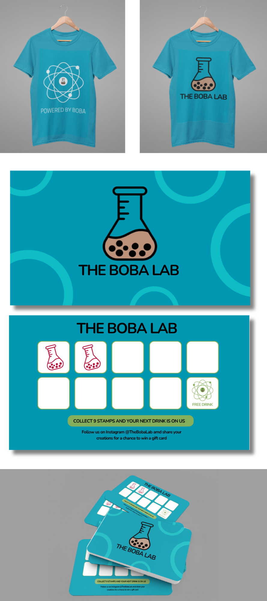 To further develop and promote The Boba Lab brand, a range of merchandise and supplementary branding assets were created. These materials not only enhance brand visibility but also provide customers with tangible ways to engage with and represent the identity of The Boba Lab beyond the core product experience.