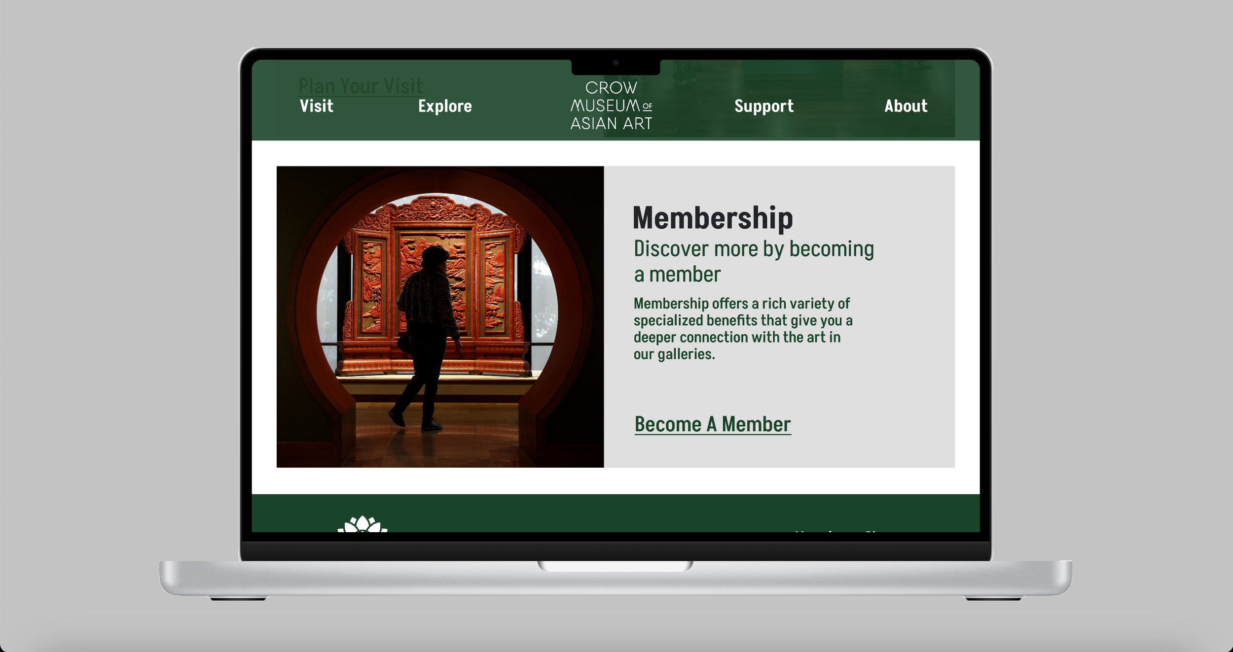 Redesign the Crow Museum homepage in order to make a more cohesive and engaging homepage that allows user to get a better understanding of what the museum has to offer.
